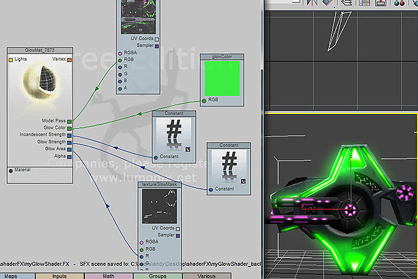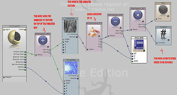 My process of shader network nodes for creating the thruster effect in with studio max plugin Shader FX.